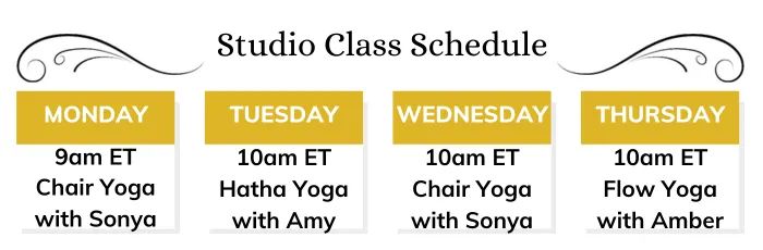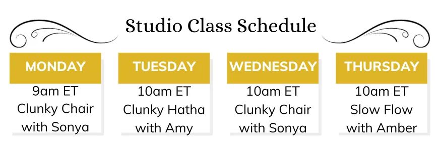 “I liked the class VERY much. I like that your classes make me work hard (mitigated by the fact you make it fun!) while reminding me not to push so hard I hurt myself (the downfall of so many previous attempts to get my body moving). The poses we work on have become more doable (though far from perfect) over the month, and so much has become more doable since I started your online classes last spring. For example, I certainly never expected to be able to squat again in my life or imagined I’d ever do the tree pose. It also gave me the courage to try out other classes, so I’m doing more moving than I had done in years. Your accepting attitude and perspective also add something special to the class. I look forward to the Monday morning class getting me up and my week going. Thanks again.”